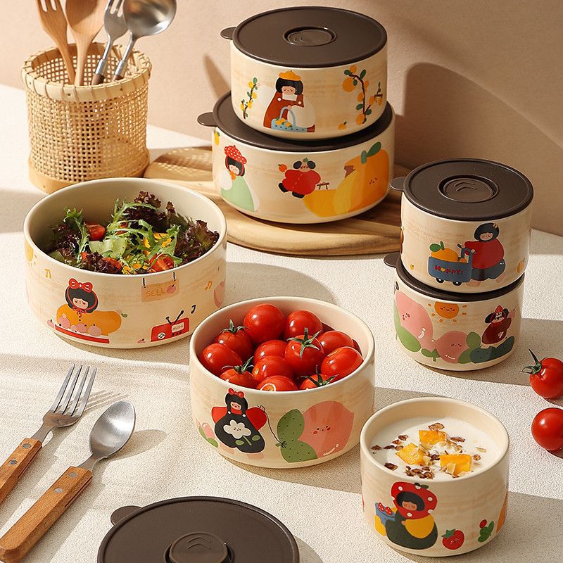 アニメ弁当碗陶磁器蓋付き鮮度保持碗事務室果物碗高顔値サラリーマン弁当箱