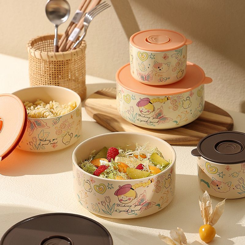 アニメ弁当碗陶磁器蓋付き鮮度保持碗事務室果物碗高顔値サラリーマン弁当箱