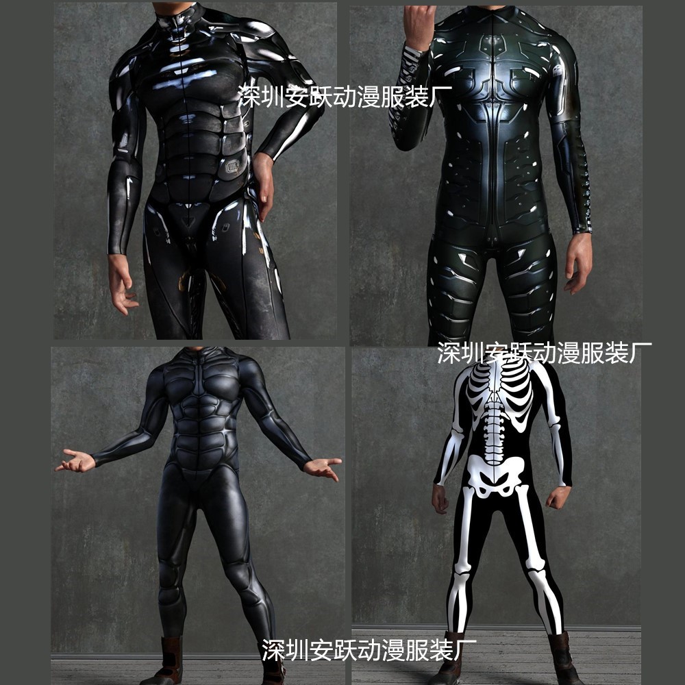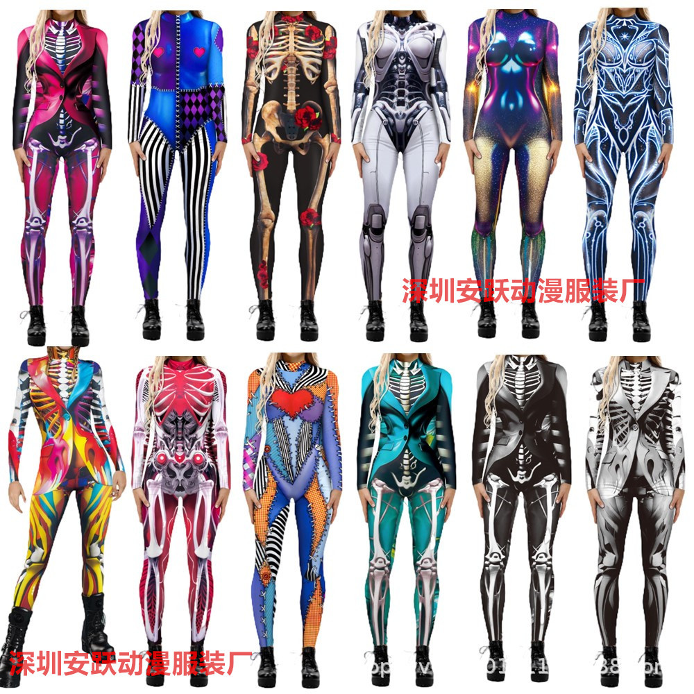 2024年アマゾンハロウィンコスプレ長袖タイトデジタルプリントスケルトンジャンプスーツ