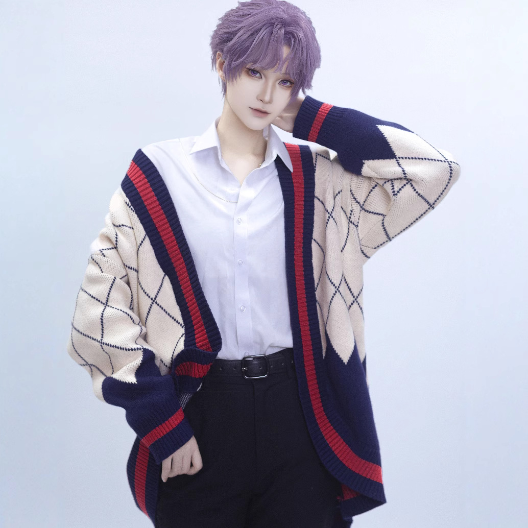 既製在庫販売愛と深宇宙祁宇と同じスタイルの非対称ロマンチックなラペルカーディガンニットセーターコスプレ衣装