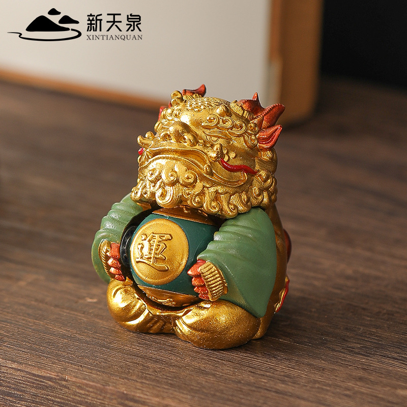 国潮舞獅子対聯創意置物DIY祝語創意デスクトップ中国式新年プレゼント樹脂文創プレゼント