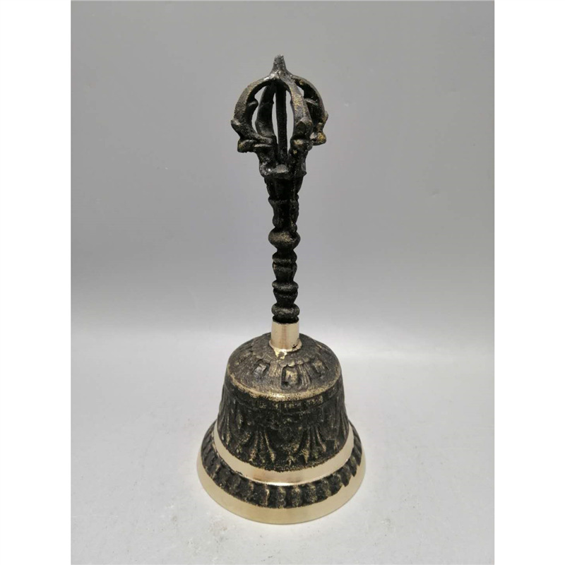 アンティーク純銅三叉鐘、手持ちガラガラ、銅鐘、四角鐘、映画やテレビの小道具、大音量の手振り鐘