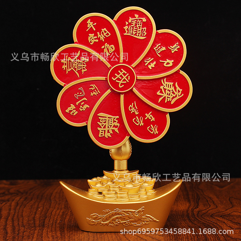 金属の赤い油の風車は元宝を回転して財を募集して宝のデスクトップのアイデアに入って金の木の事務室を飾って卸売りをします。