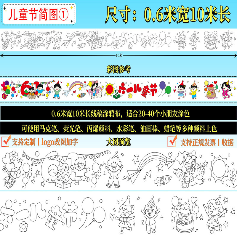 国慶節テーマ百メートル絵巻コミュニティ児童秋遊彩絵テーマ5メートル0.6幅半製品製図大型横