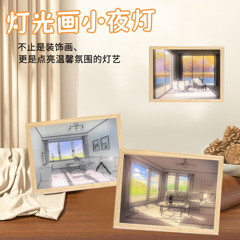 抖音越境アマゾンベッドサイドLED純音インスタイルライトペインティングナイトライト装飾画インスタイル照明