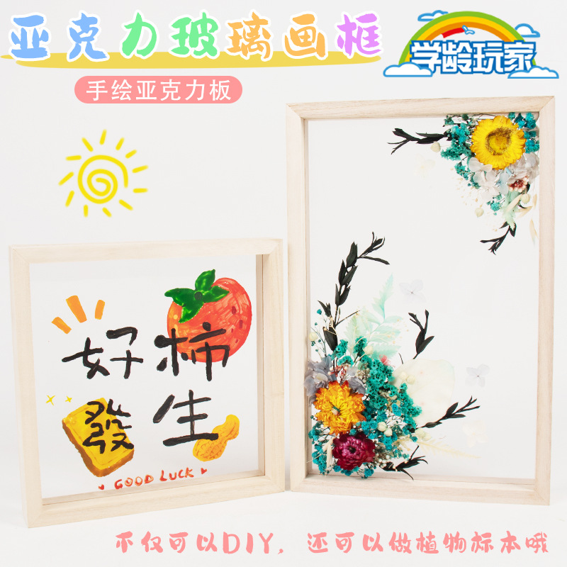 幼稚園児手作りdiy絵画実木アクリルガラスフォトフレーム創造落書き手描き美術額縁
