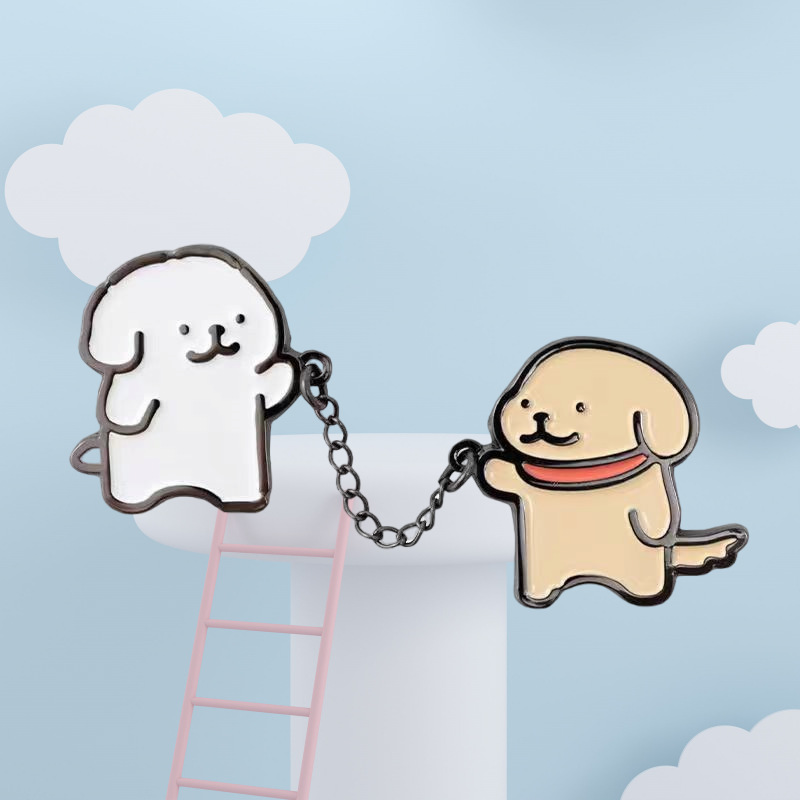 新しいライン子犬手をつないで子犬金属バッジカップル親友ブローチかわいい服バッグアクセサリーブローチ