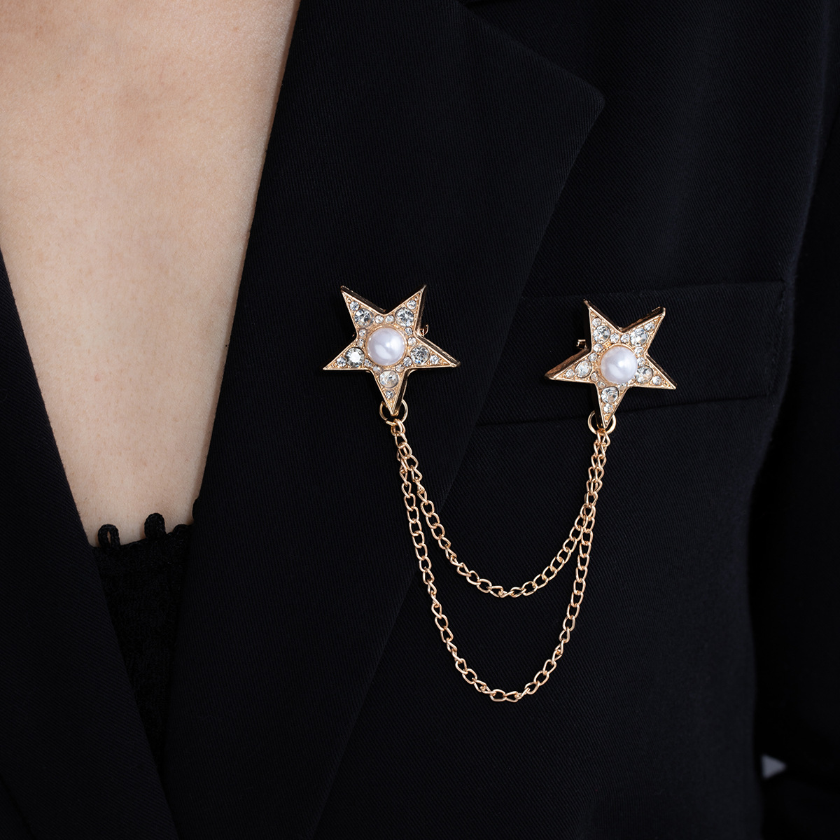 欧米の個性高級感六芒星チェーンデザイン感ブローチクロスボーダーファッション胸花高級ピンアクセサリー
