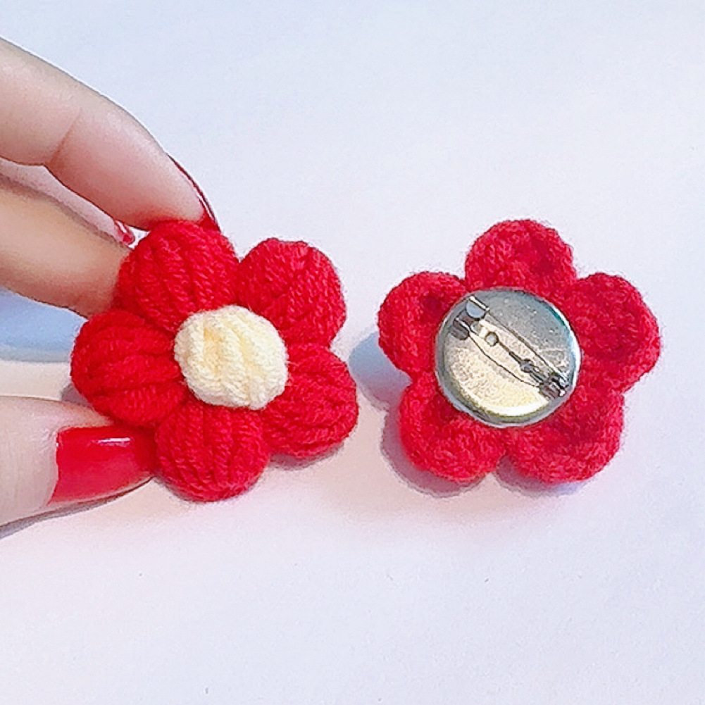 小さな赤い花を贈りましょう ウール 手編み ヘアピン ヘアピン ヘアバンド アクセサリー ブローチ ファンサポート