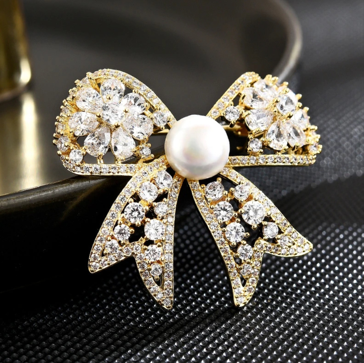 新商品のシンプルな透かし彫りの蝶結びのブローチ女性ファッションの軽豪華な淡水真珠の豪華なピンは光を遮ることを防ぎます。
