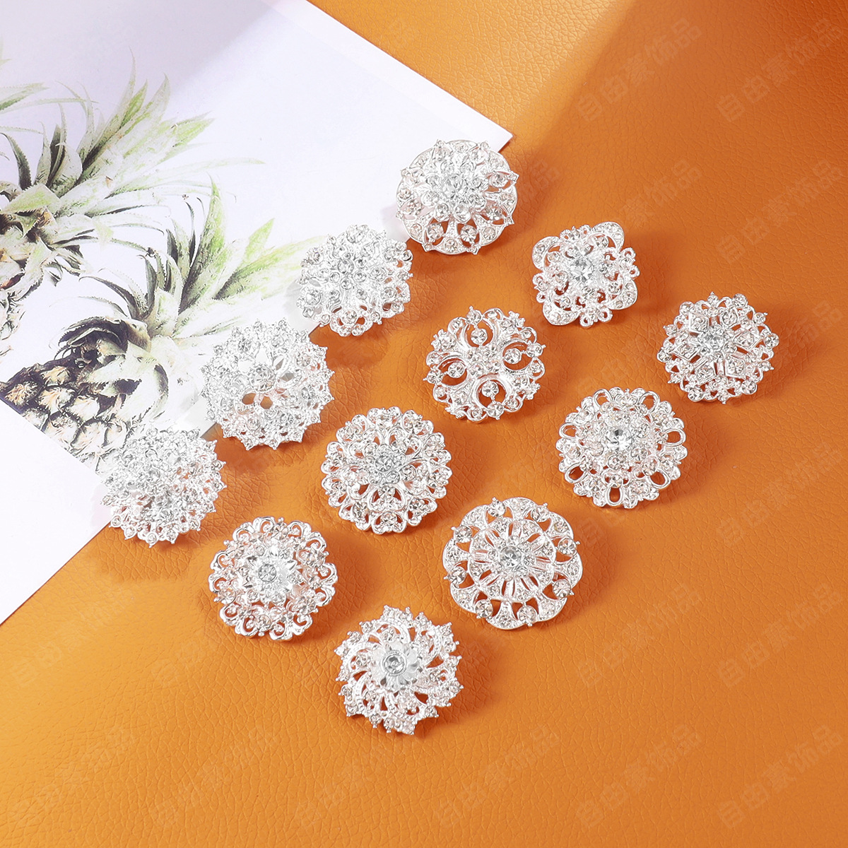 国境を越えて人気の高い12個セットのブローチ、ウェディングブーケDIY固定ピン、ラインストーンブローチ、衣料品アクセサリー、在庫あり
