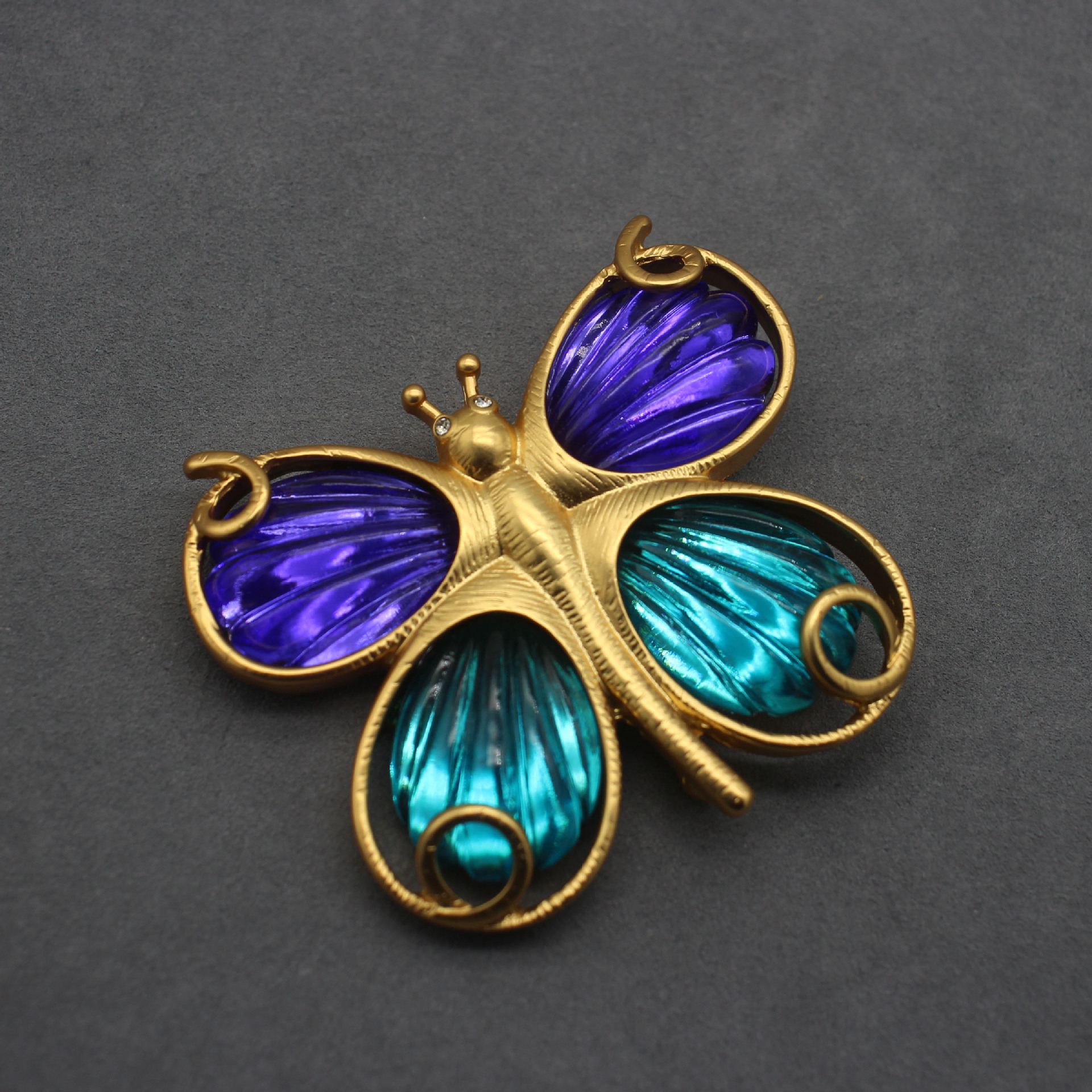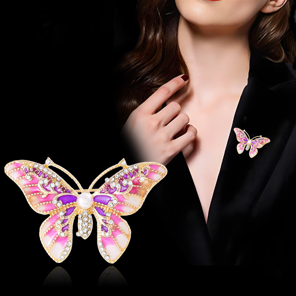 欧米のフランス式の高級な小さい香風のブローチのグラデーション色の蝶の胸の花の合金のドリルの動物のピンの服装の装飾
