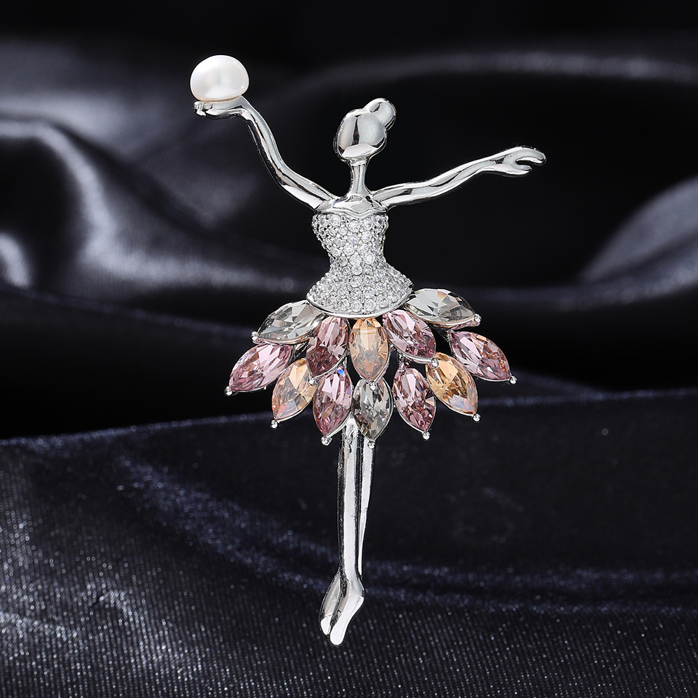 クロスボーダー新色バレエガール銅象嵌ジルコン少女コサージュファッションピンニッチ漫画アクセサリー