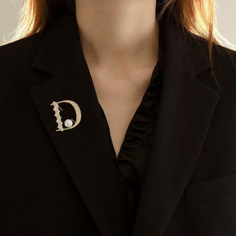 気質シンプル文字D模造真珠ブローチ2024年新潮ピンアクセサリー服装飾部品メーカー