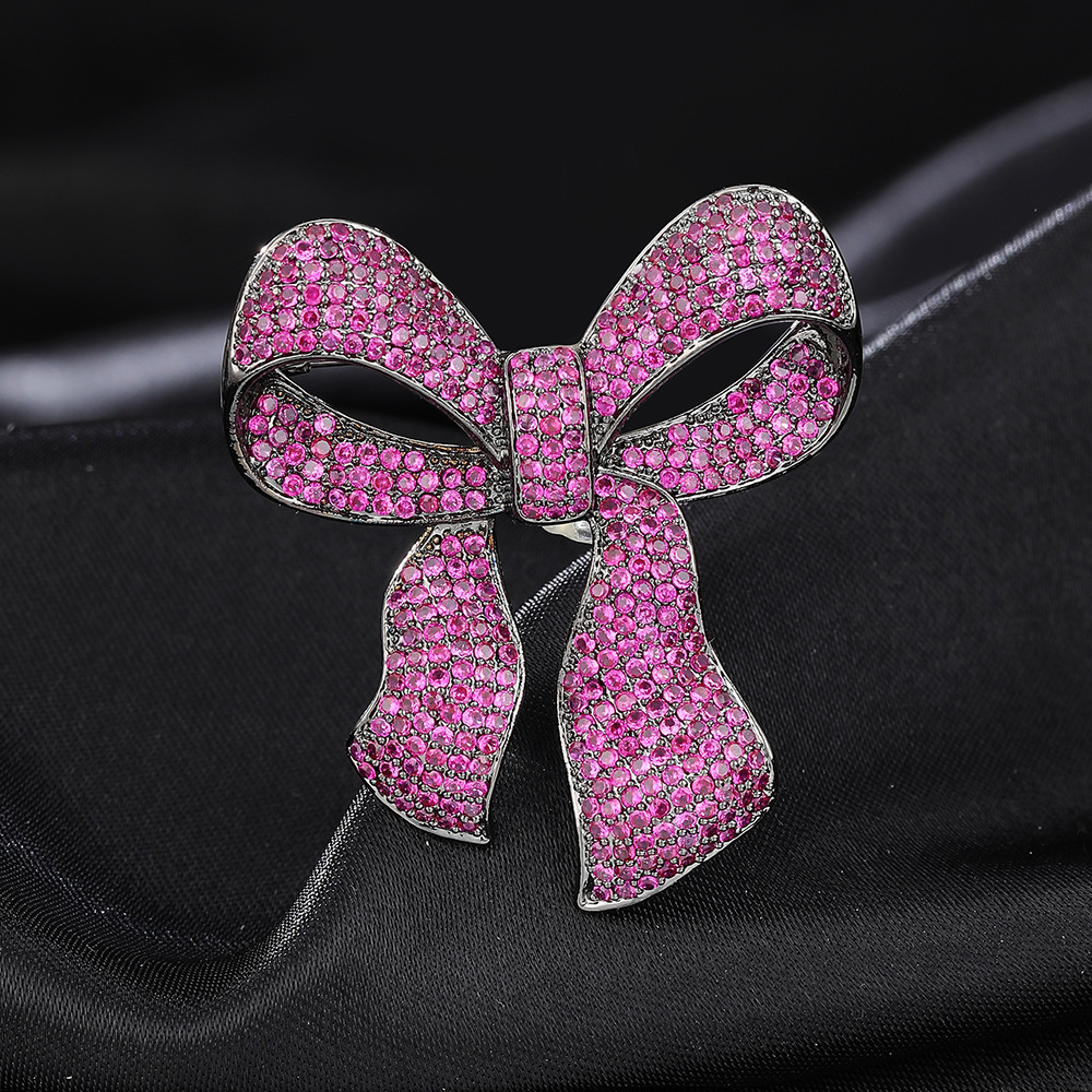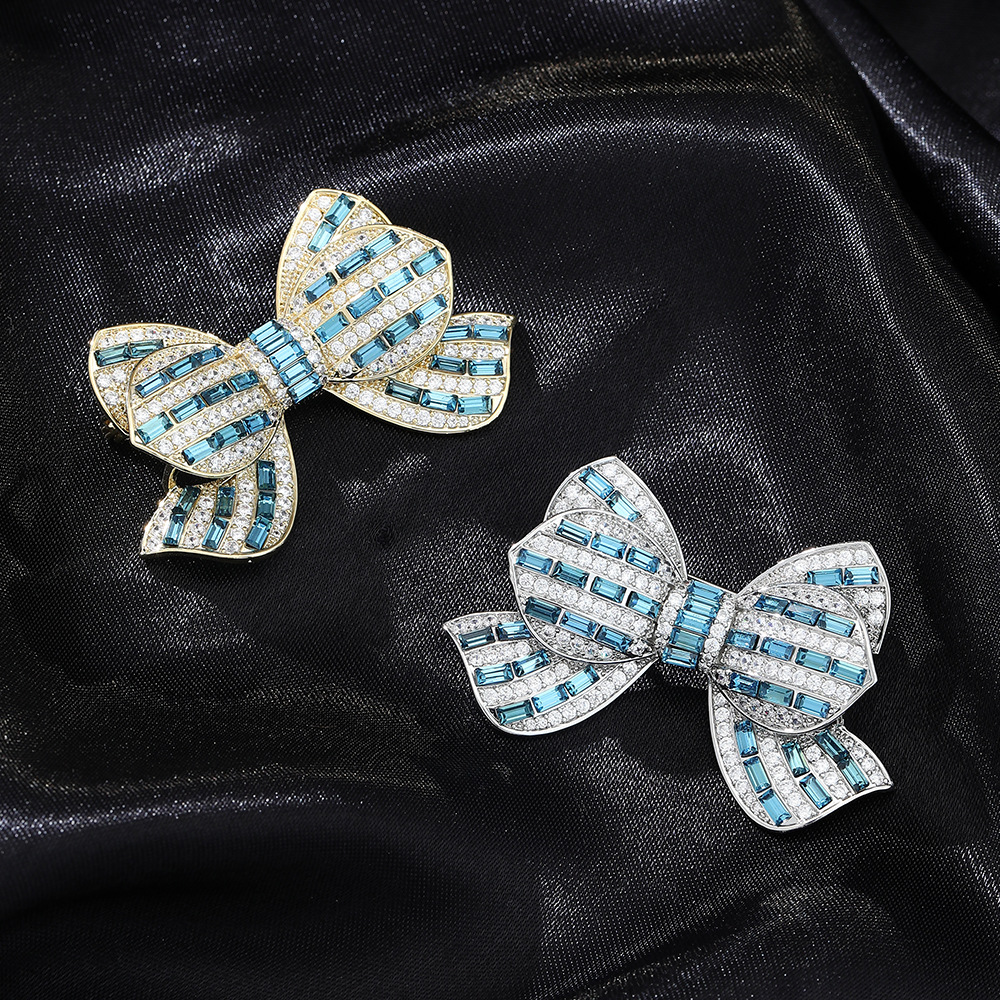 女性用韓国スタイルジルコンリボンブローチ、軽くて豪華なニッチで絶妙なスーツのネックラインコサージュ、露出防止ピンアクセサリー