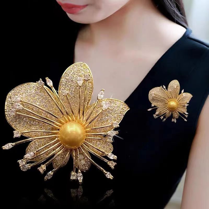 新しいレトロな花のブローチニッチデザインハイエンドの秋と冬のコサージュコートスーツパールフラワーアクセサリー