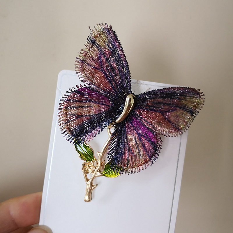 英華アクセサリーアクセサリー刺繍ブローチ花蝶グラデーション高級防走光ピン一字針
