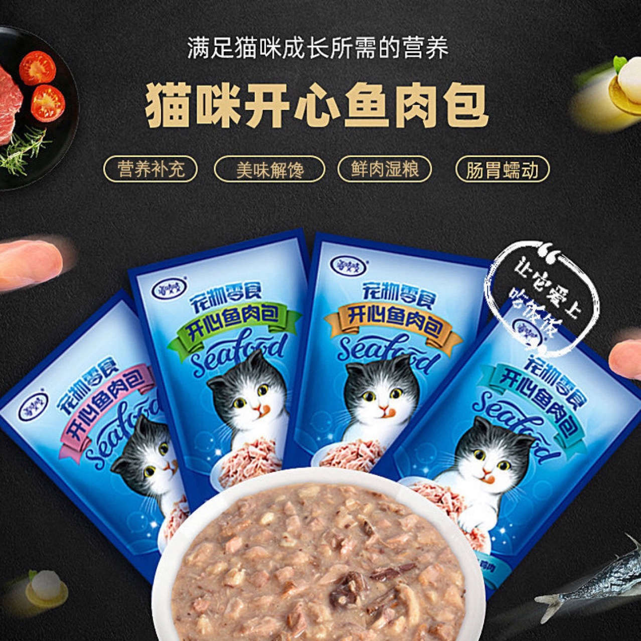 海ギシギシ楽しい魚の肉まん達理猫の間食のウェットフードは柔らかい缶詰の猫の缶詰の妙味を包んで魚の味を包みます。
