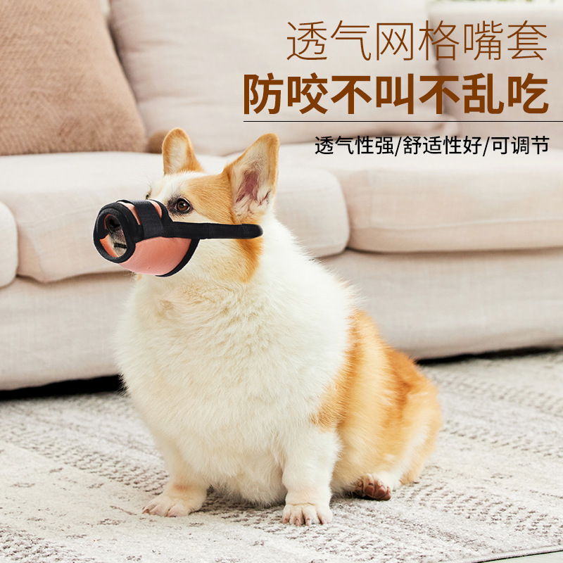 ペットマスク、犬用口輪、噛みつき防止、食べ防止、舐め防止、無駄吠え防止装置、小型・中型犬用コーギーテディ口輪