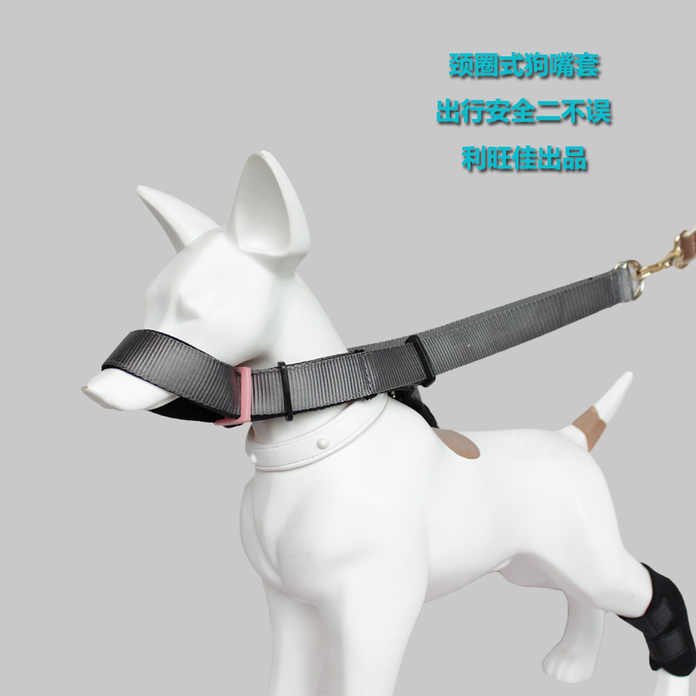 メーカーの現物ナイロン犬の首輪 + 口のカバーは噛むことができます。ペットの口のカバーは小型の中大型犬に適しています。