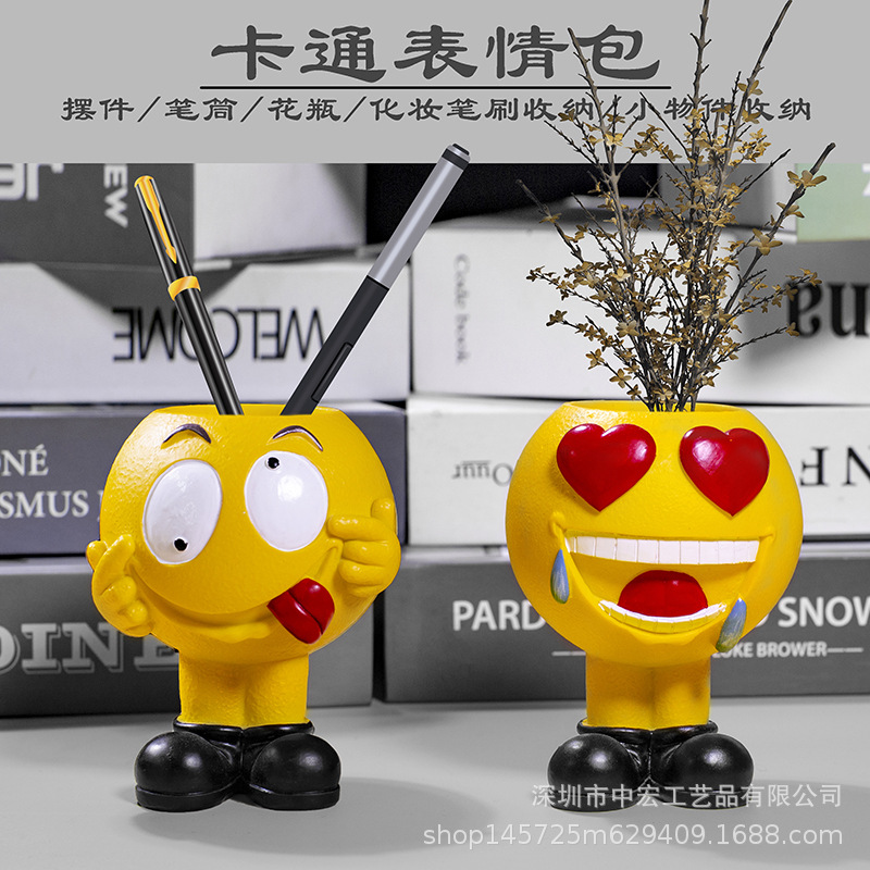 創意樹脂表情包花瓶筆立て収納置物喜怒哀楽感情表現シンプル現代趣味