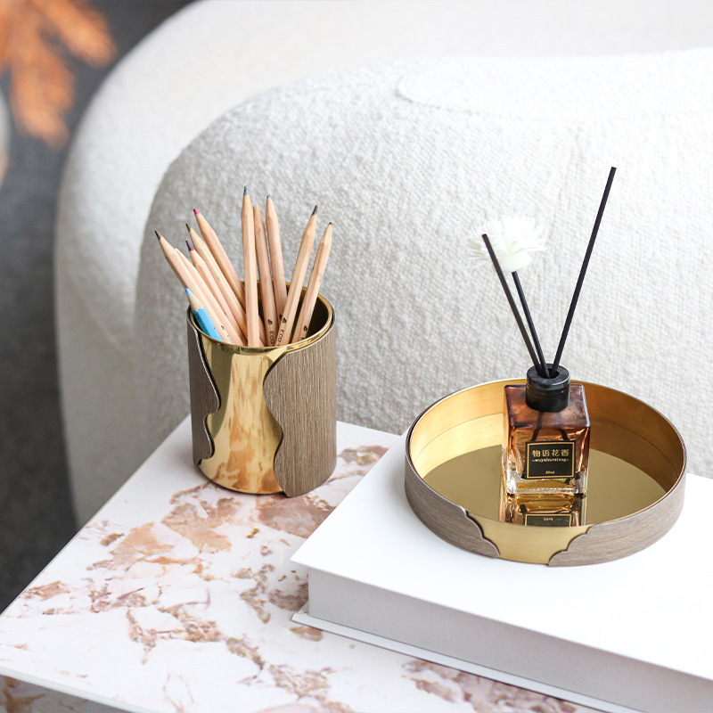 木目に似せて軽くて豪華な収納筆筒トレーセット芸術装飾品見本間書斎寝室オフィス置物
