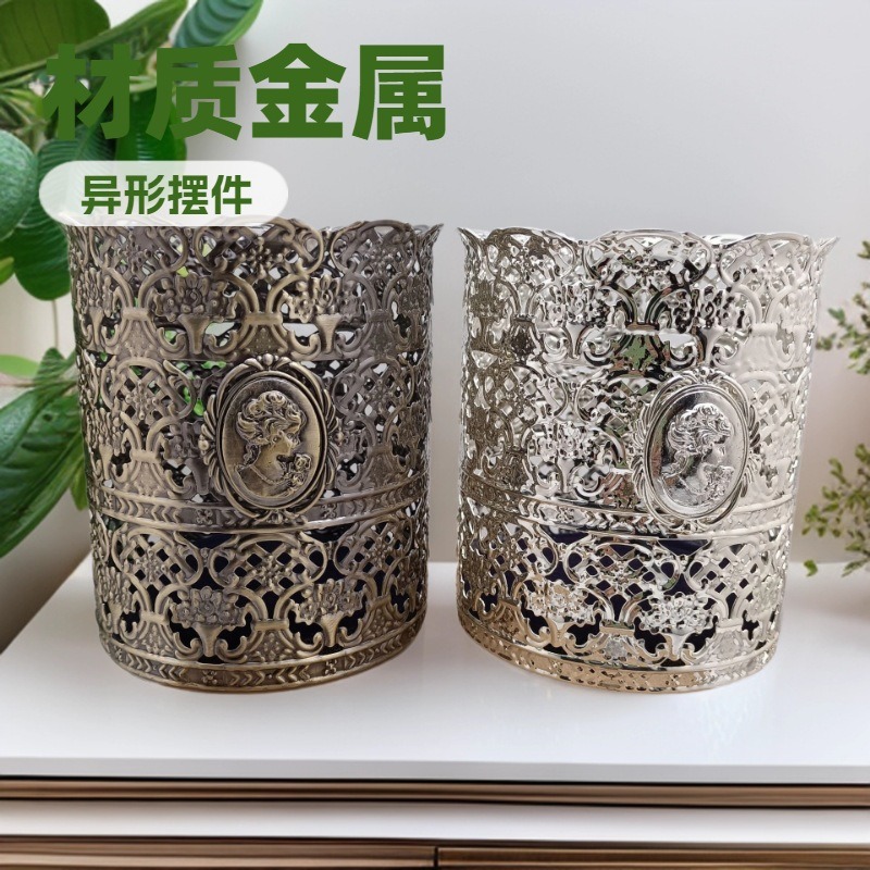 金属工芸品筆筒北欧シンプル鉄芸オフィスデスクトップ収納枠幾何学筆筒棚