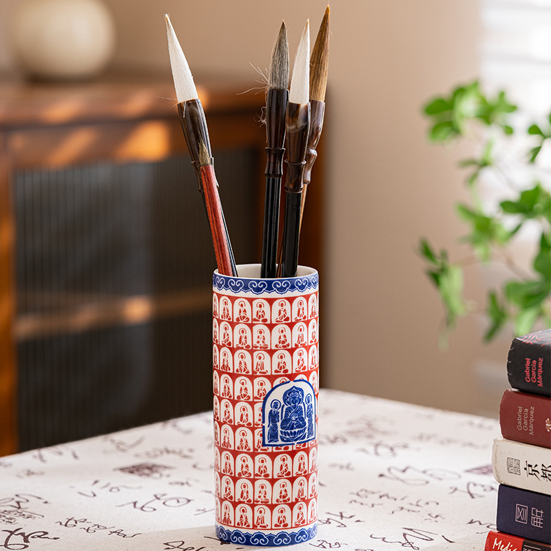 白磁の花瓶敦煌千仏文創陶磁器の花器の花挿し筆立て家庭用レストランのテレビ棚のテーブルの置物