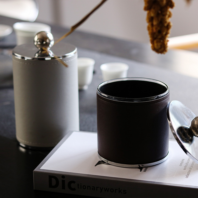 ラウンドビーズ革ラウンドライト贅沢デスクトップ文房具収納ボックス収納缶化粧ブラシ筒クリエイティブファッション事務用品