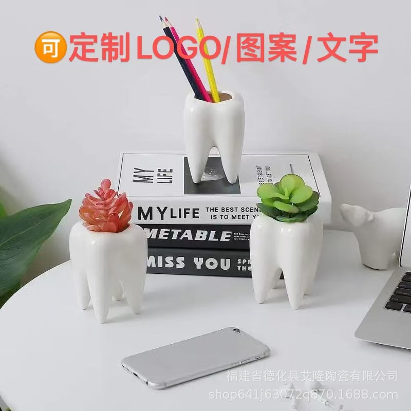 北欧ins風のアイデアは陶磁器の筆筒の装飾品の歯の形の歯ブラシのコップの雑物を責めて植木鉢を収納します。