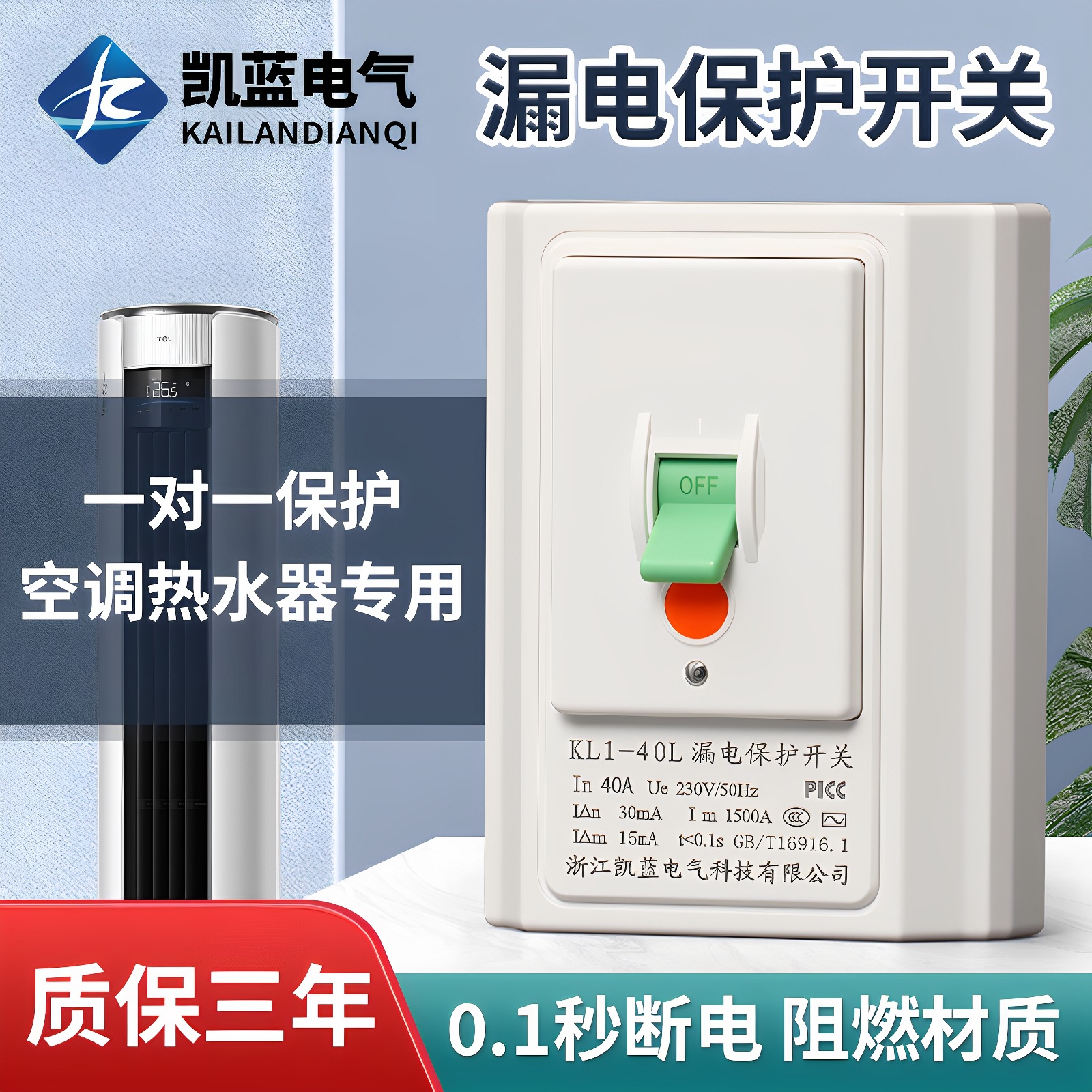 86型暗装家装40A空调漏电保护开关 电热水器专用漏保家用空气开关