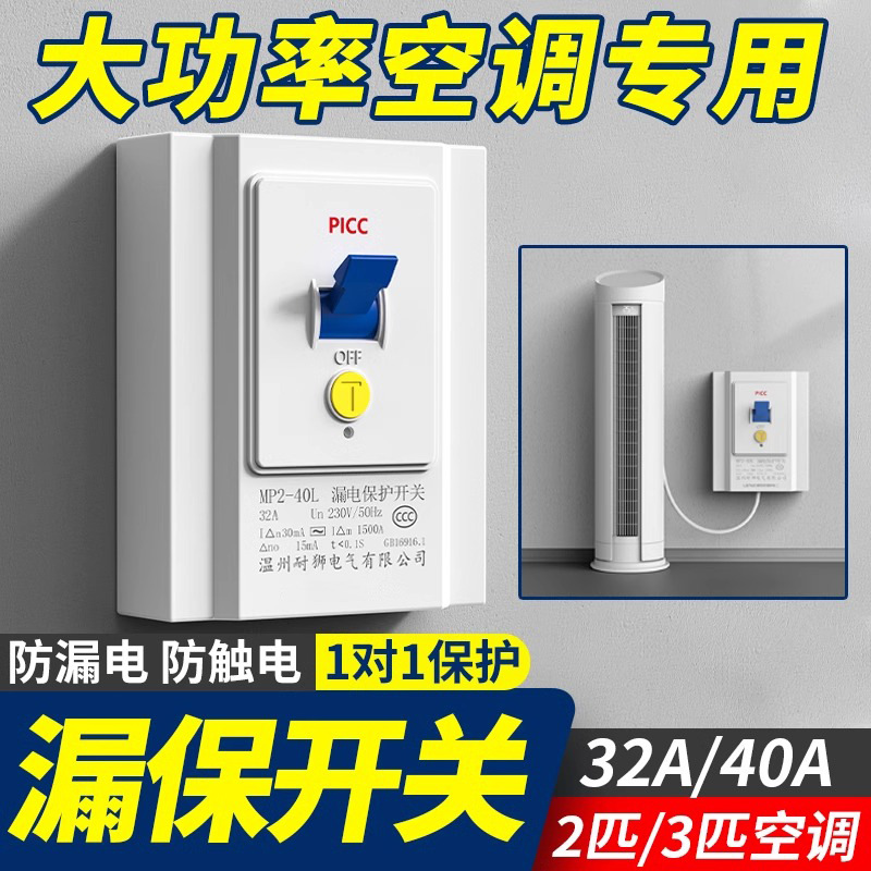 【】卓控隠蔽型防水漏電保護スイッチ32A40A キャビネットエアコン電気温水器自動電源遮断