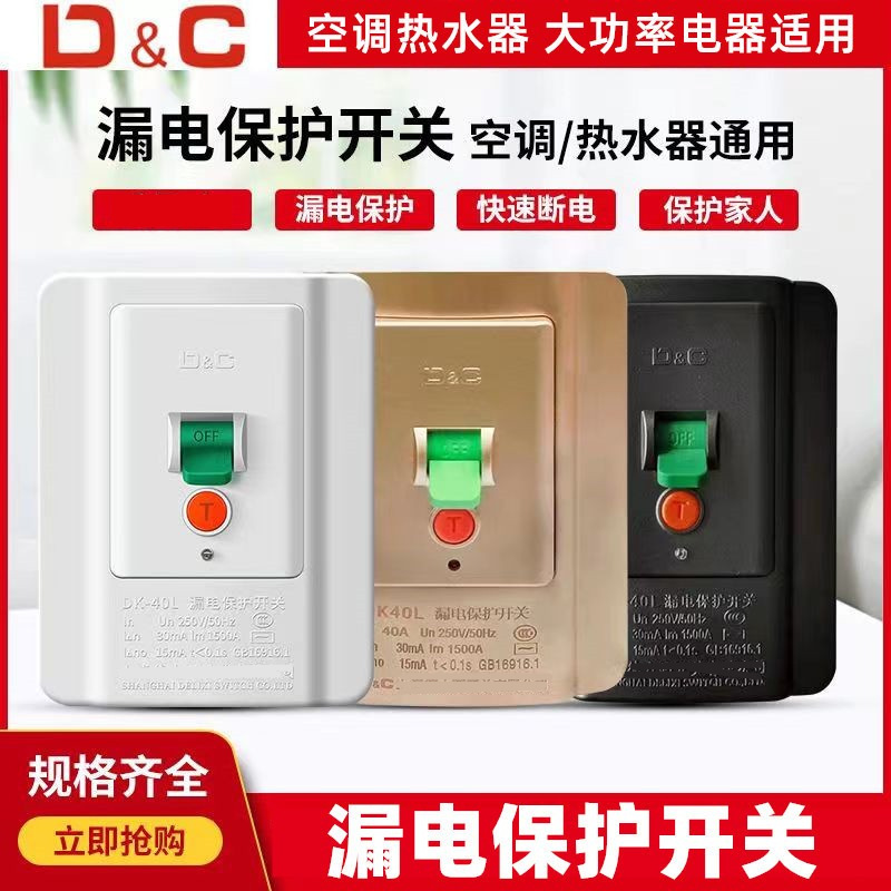 2P 漏電保護スイッチ 86 タイプ隠蔽漏電保護家庭用 Delixi 給湯器空調漏電プロテクター 40A