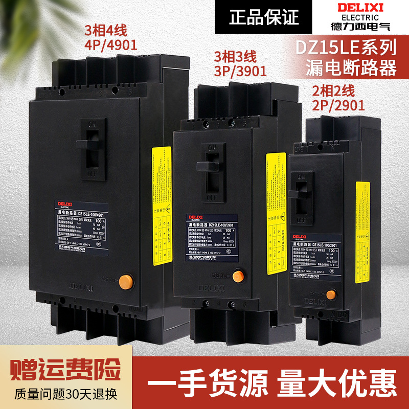 プラスチックケース漏電遮断器dz15le三相四線100a空開単相220v保護器スイッチ