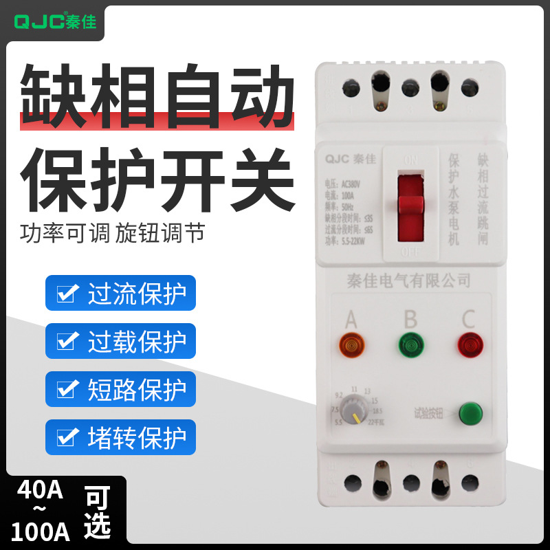 パワー調整可能380v三相モーターポンプ専用電子式欠相過流スマートブレーカースイッチ