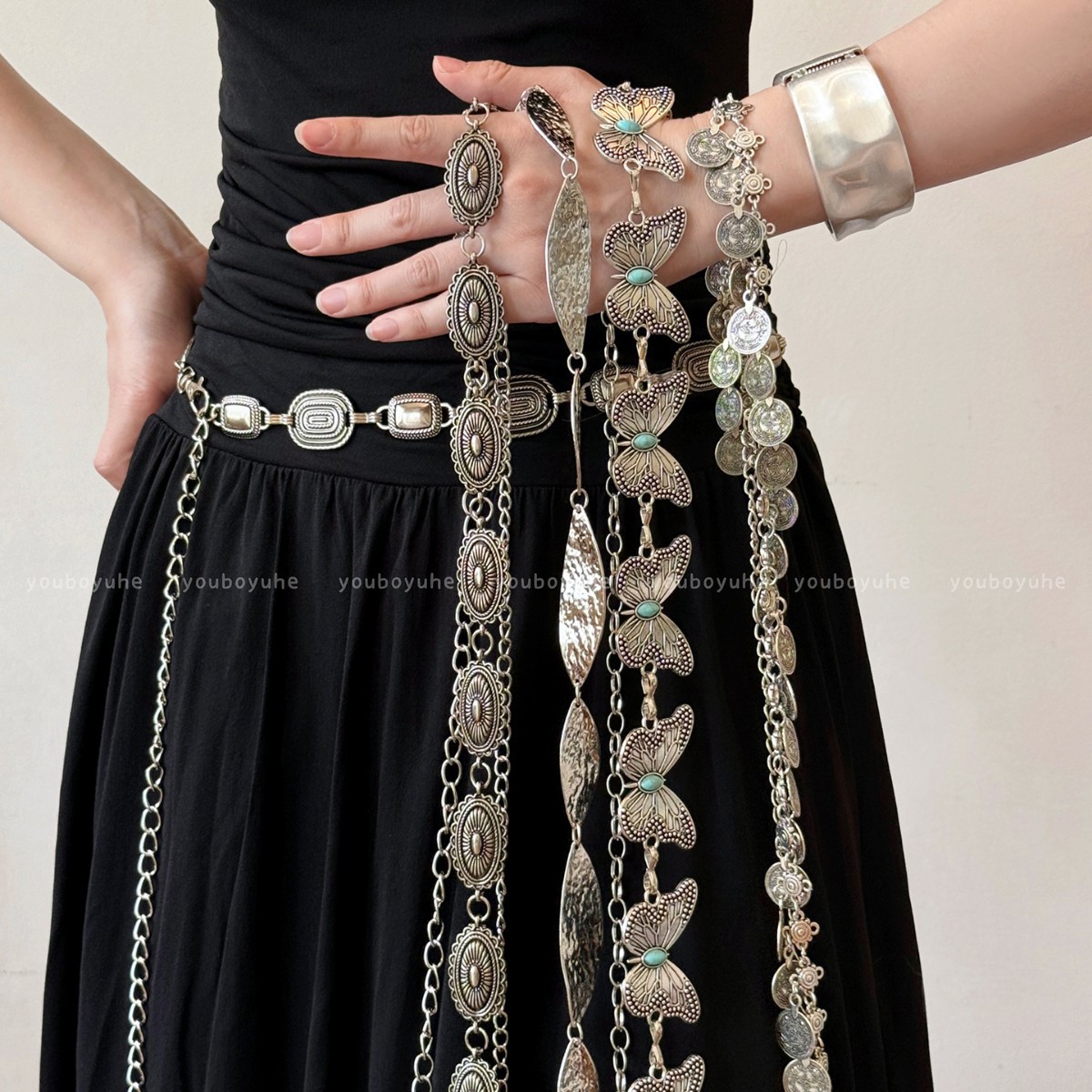 ボヘミアンエスニックスタイルバタフライウエストチェーンレディースニッチデザインハイエンドスカート装飾ベルト付き