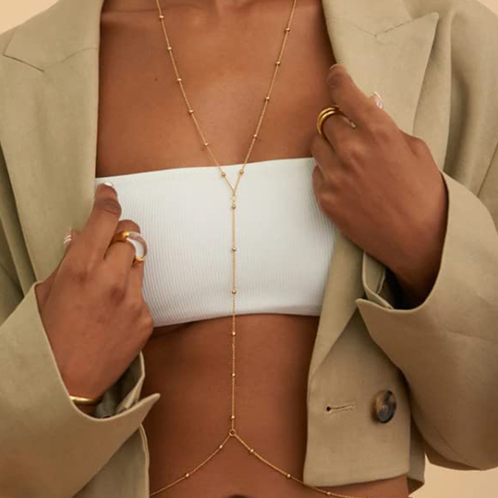 欧米のファッションセクシーなビーズの胸のチェーンのチタン鋼の米のチェーンの腰のチェーンのデザイン感のネックレスの体のチェーンの一体の装飾品