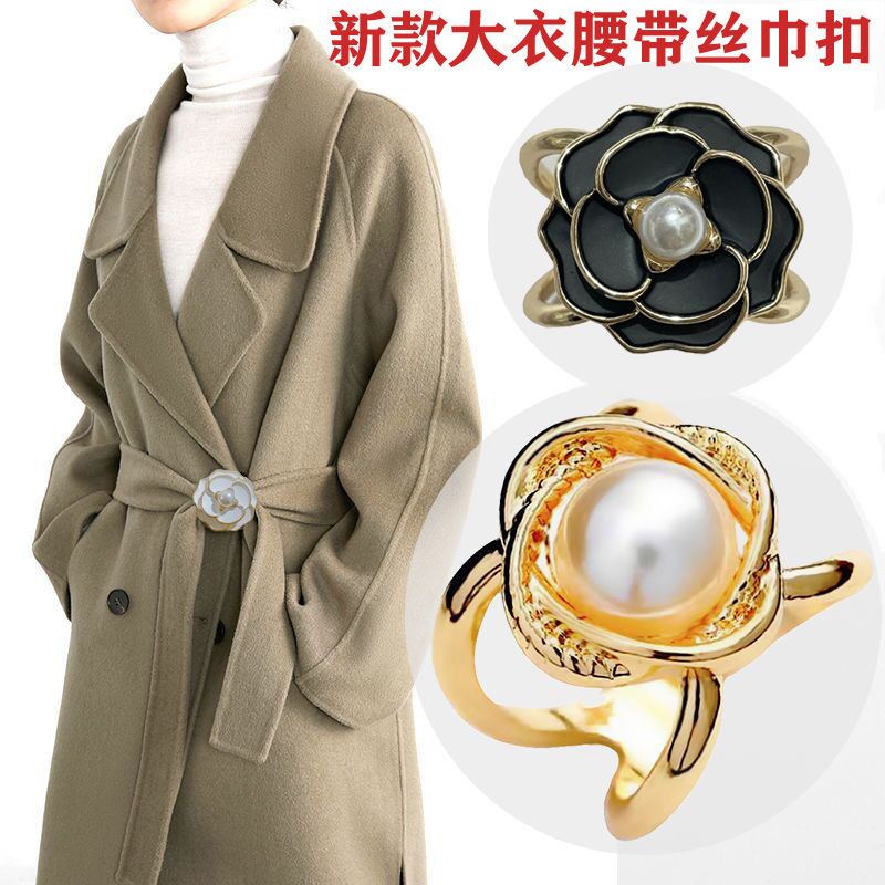 毛を代行します。コートのベルトにバラの花の大きなビーズのマフラーのスカーフのボタンのファッションのスカーフのボタンを掛けます。
