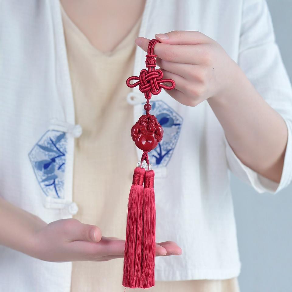 高含有量の朱砂の朱砂の双ピシュピストの平安はペンダントの男女の金の紫金砂のネックレスのペンダントのセーターのチェーンを掛けます。