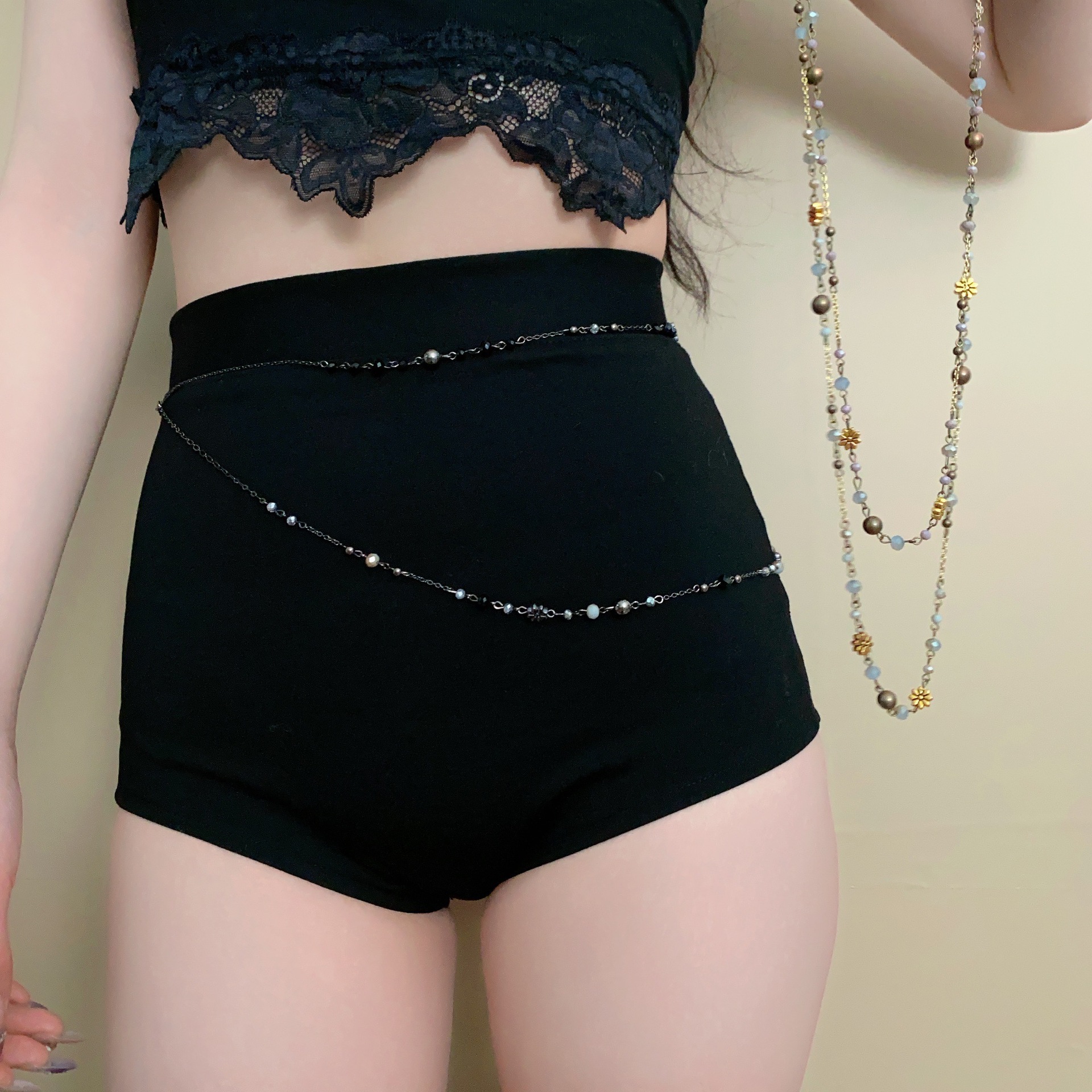 超仙多層真珠ビーズウエストチェーン女性欧米風個性精緻流蘇腰飾り甘いクールファッション百合アクセサリー