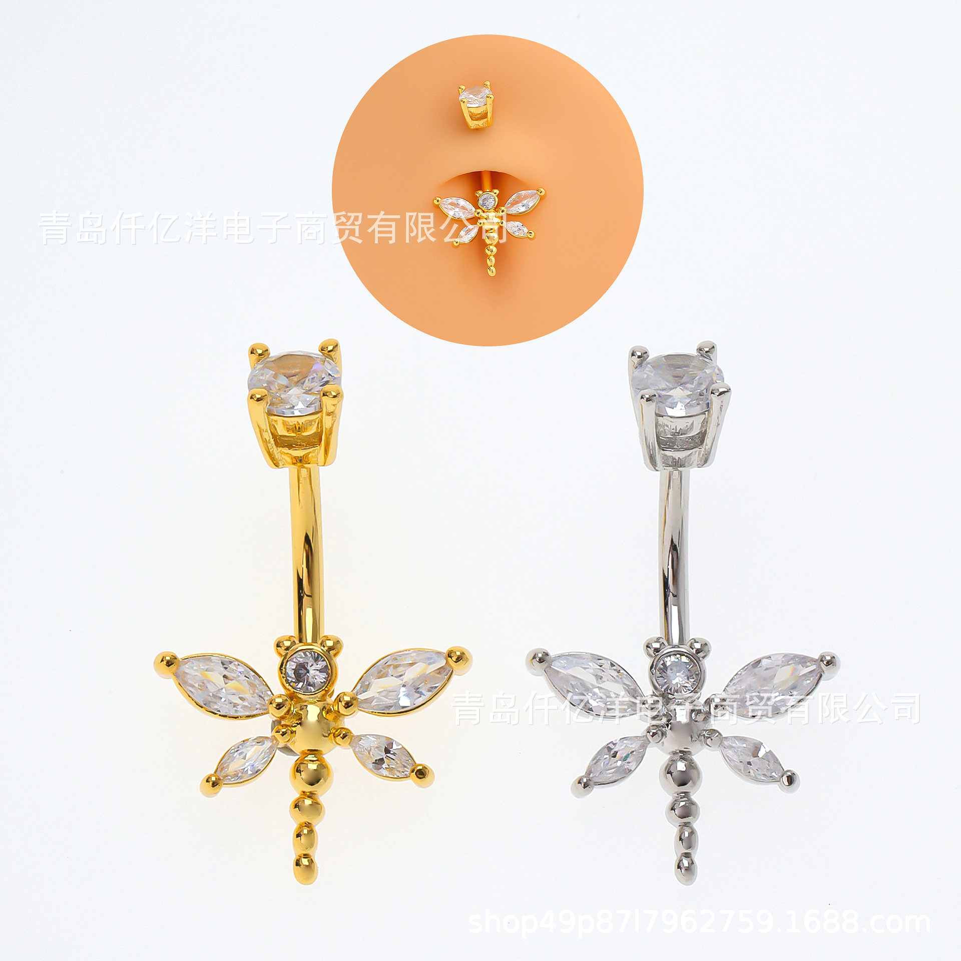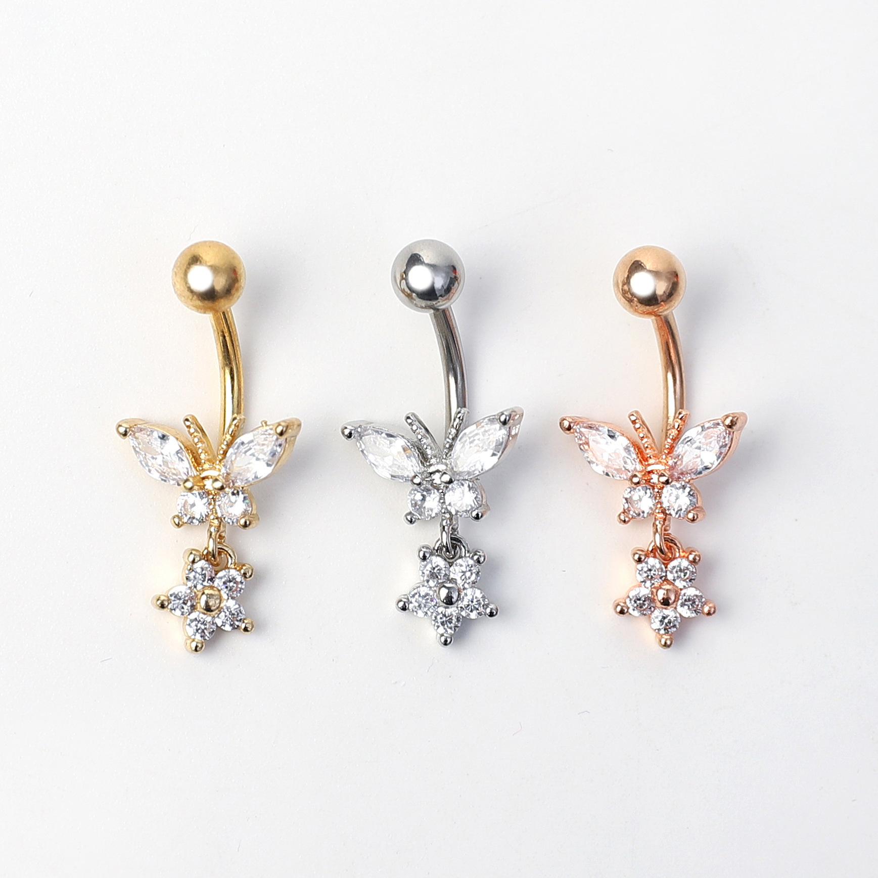 欧米の爆発的な人気のある個性的なファッションの潮流蝶馬眼ジルコンのへそ釘のアイデアはへその輪を穿刺します。