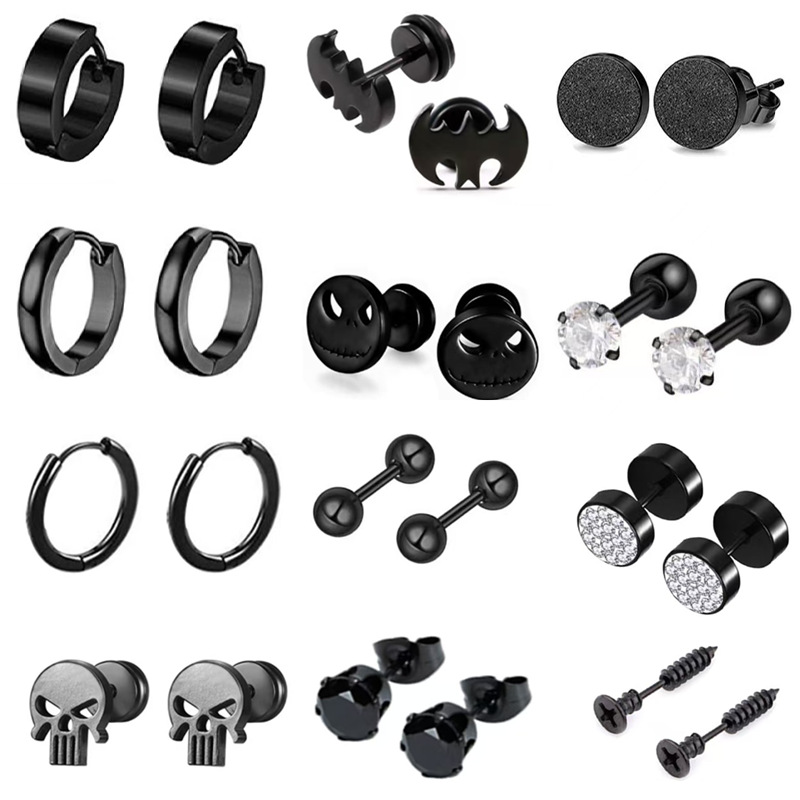 国境を越えたホットセール 12 ペアのステンレス鋼ファッショナブルなスカルネジブラックミックスセット工場直販卸売