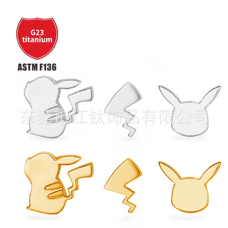 江チタンF136チタンピカチュウピアス稲妻尾唇釘G23チタン合金人体穿刺アクセサリー耳骨釘