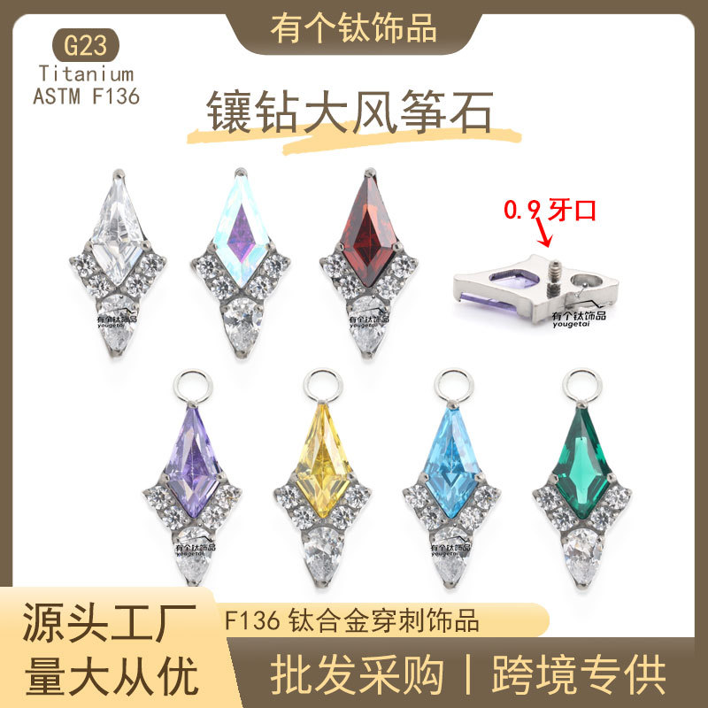 メーカーカスタマイズされた F136 チタンイヤリングカイトストーンアクセサリーペンダントペンダントチタン合金ボディピアスジュエリーイヤリング