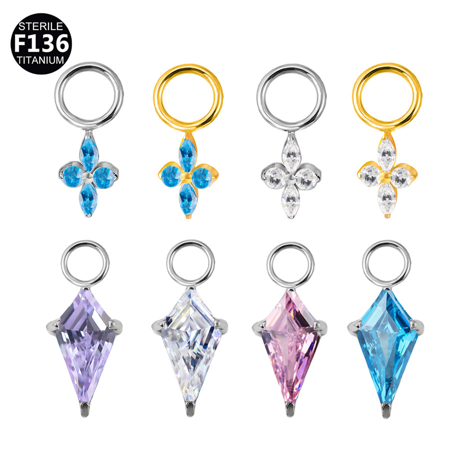 F136 チタンカイトストーンペンダントアクセサリー 5A ジルコン G23 チタン合金耳スタッドリップスタッド耳骨スタッドピアスジュエリーヘッド