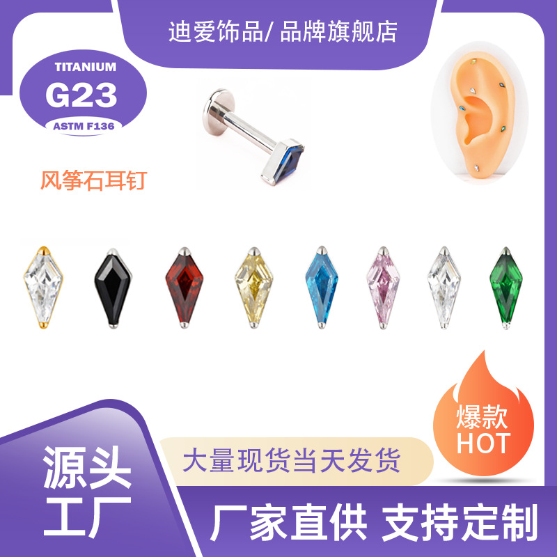 F136チタンピアス凧石ジルコンひし形耳骨釘ねじG23チタン合金人体穿刺アクセサリー国境を越えた