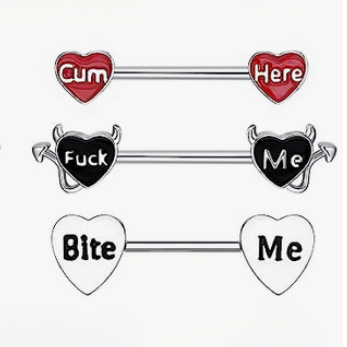 国境を越えた欧米の人体穿刺アクセサリーセクシーアルファベット桃心小悪魔乳釘愛乳環Cum here