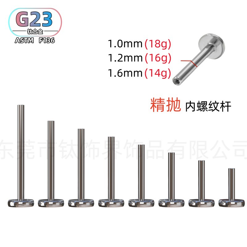 F-136チタン合金鼻釘耳骨釘平底棒内ねじ唇釘ベース16gクロスボーダー穿刺アクセサリー部品