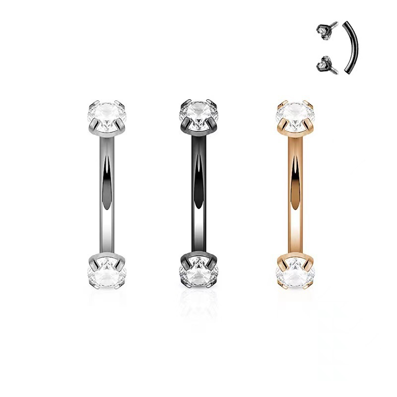 316ステンレス四爪二頭内歯円ジルコン曲げ棒バナナ棒ピアス鼻リング眉釘飾り