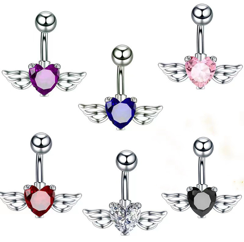 ヨーロッパとアメリカのファッションピアスジュエリーへそネイル女性の羽愛ジルコンへそリングメッキリアルカラフルなへそネイル卸売